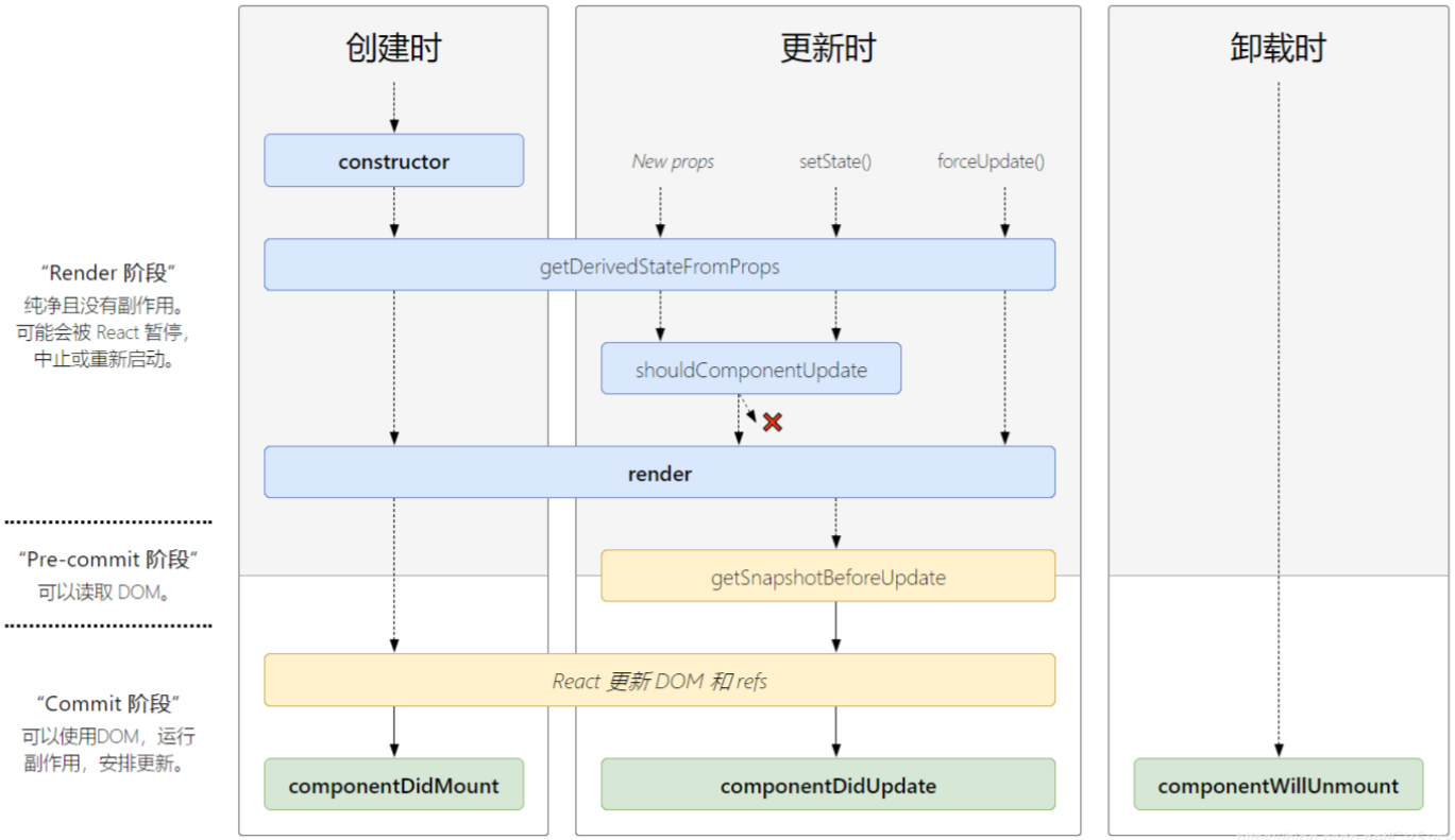 也因此react16.8的生命周期分为三个阶段:render、precommit、commit render阶段允许被打断(被fiber时间分片执行) commit阶段总是同步执行