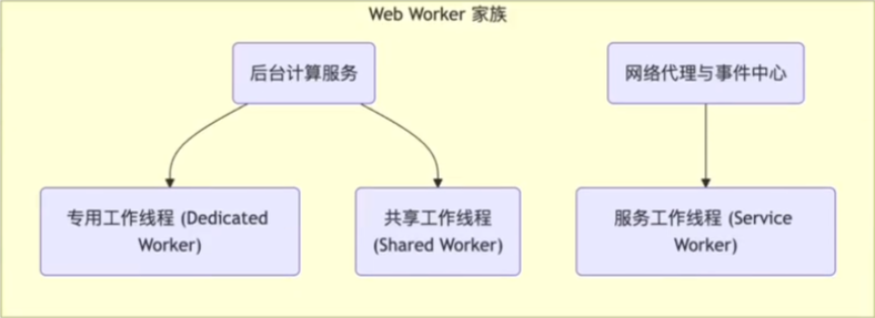 服务工作线程 与其他两个worker不同,ServiceWorker在页面创建之后它的生命周期就和当前页面没有关系了 serviceworker会作为浏览器的一个常驻线程一直运行,即使创建它的页面关闭了也不会停止